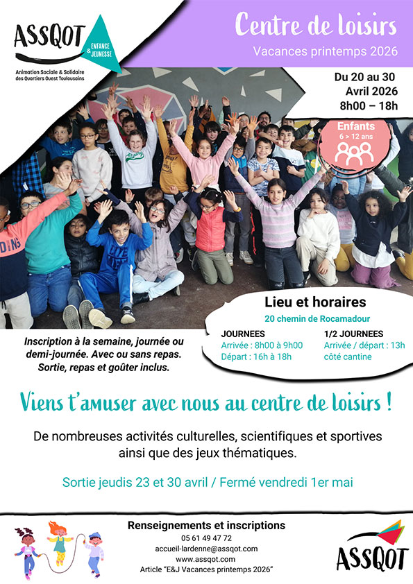 Centre de Loisirs du lundi 20 au jeudi 30 avril 2026