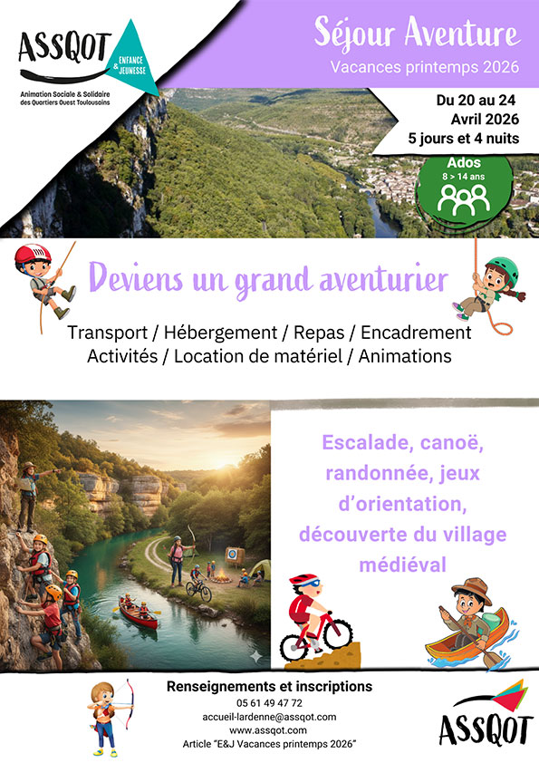 - Le Séjour Aventure – Lundi 20 au vendredi 24 avril – 8 à 14 ans