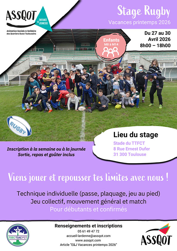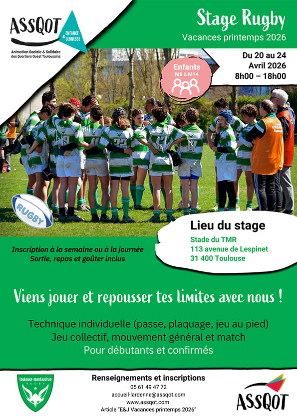 - Le Stage Rugby au TMR – Lundi 20 au vendredi 24 avril – M8 au M14