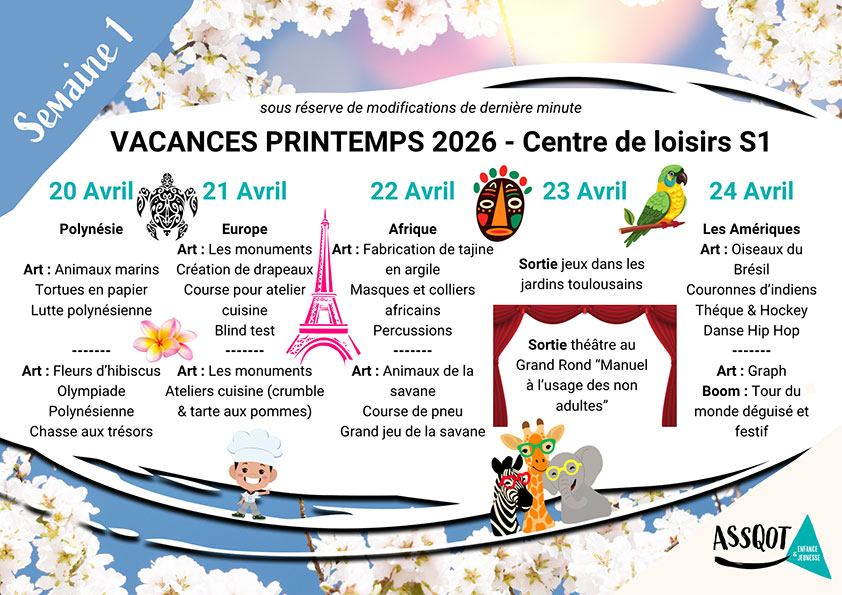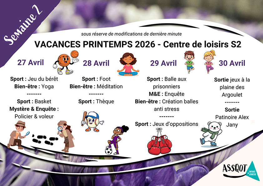 Les activités proposées pendant ces vacances de printemps sont les suivantes :